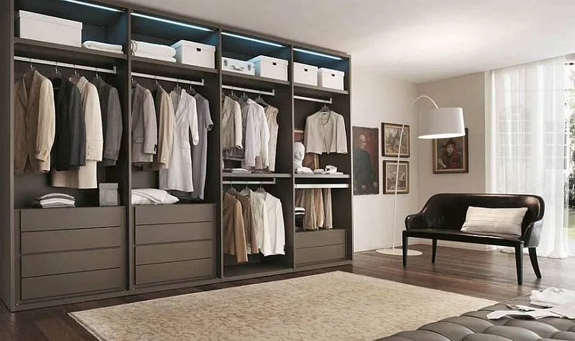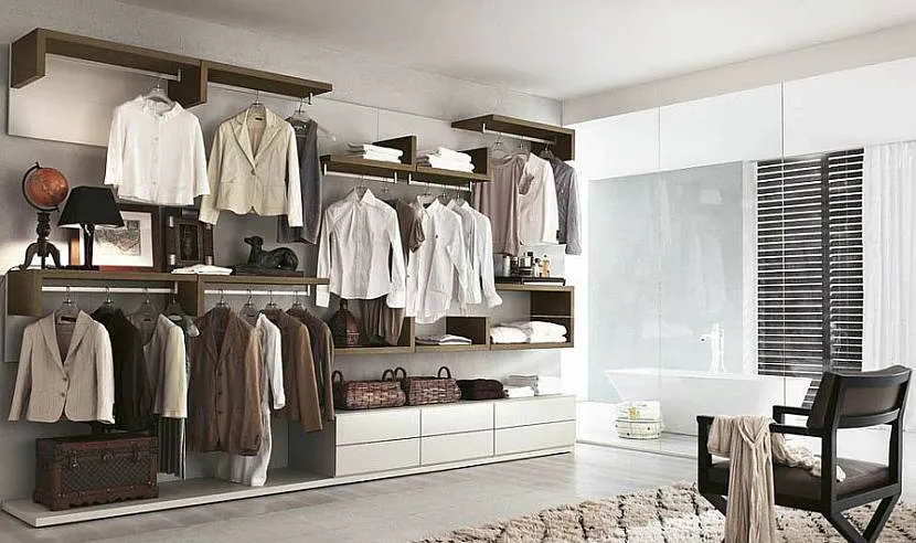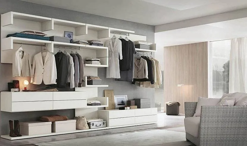 Открытый гардероб в спальне – для тех, кому нужно видеть свои “богатства”