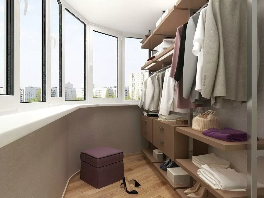Существует еще один, но достаточно полезный вариант – это размещение гардеробной комнаты на балконе или на лоджии. Но перед этим следует позаботиться, чтобы на балконе или на лоджии было тепло, а это возможно только в результате утепления. Кроме этого, желательно, чтобы это место было отапливаемым.