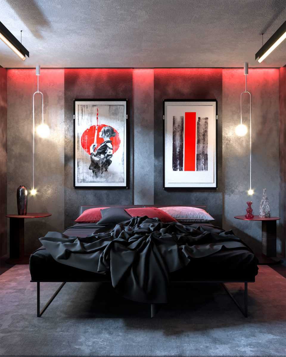 Дизайн спальни в красных тонах имеет как положительные, так и отрицательные стороны.