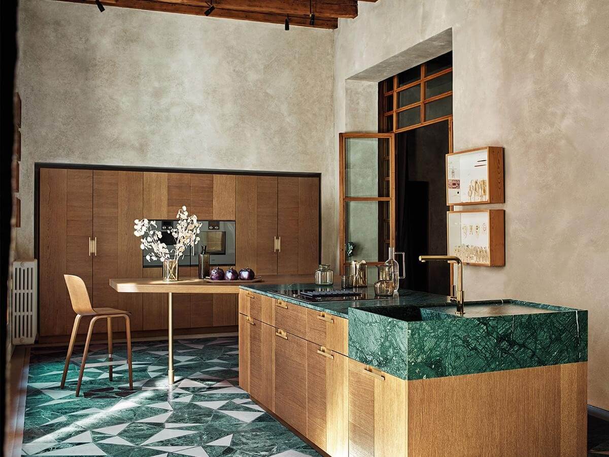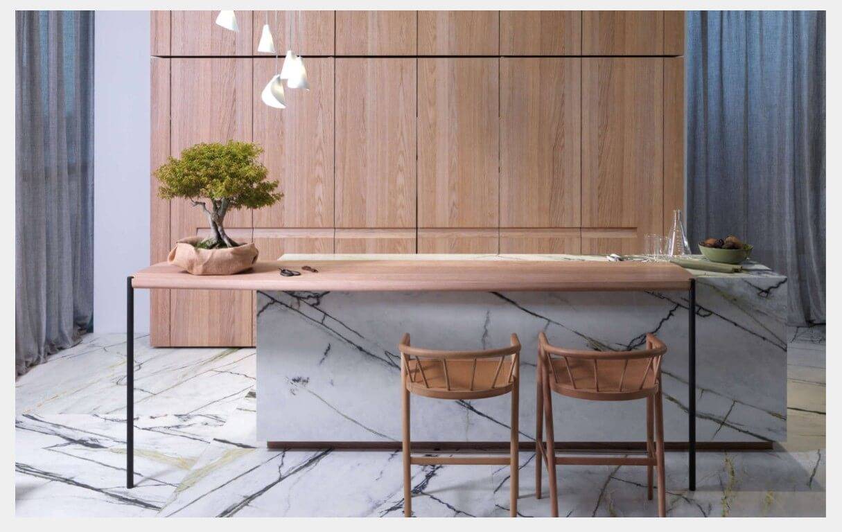 Сочетание натурального дерева и мрамора выглядит эффектно. Salone del Mobile