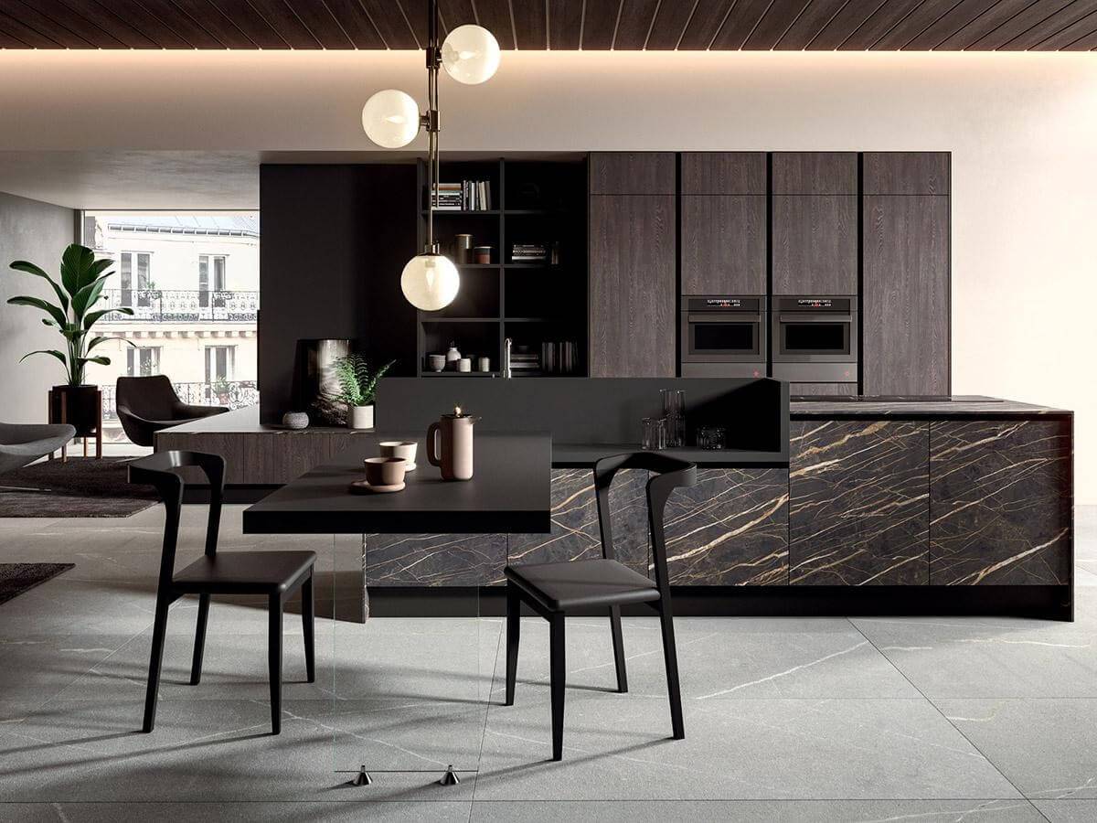 Тёмное дерево в сочетании с натуральным камнем. Salone del Mobile