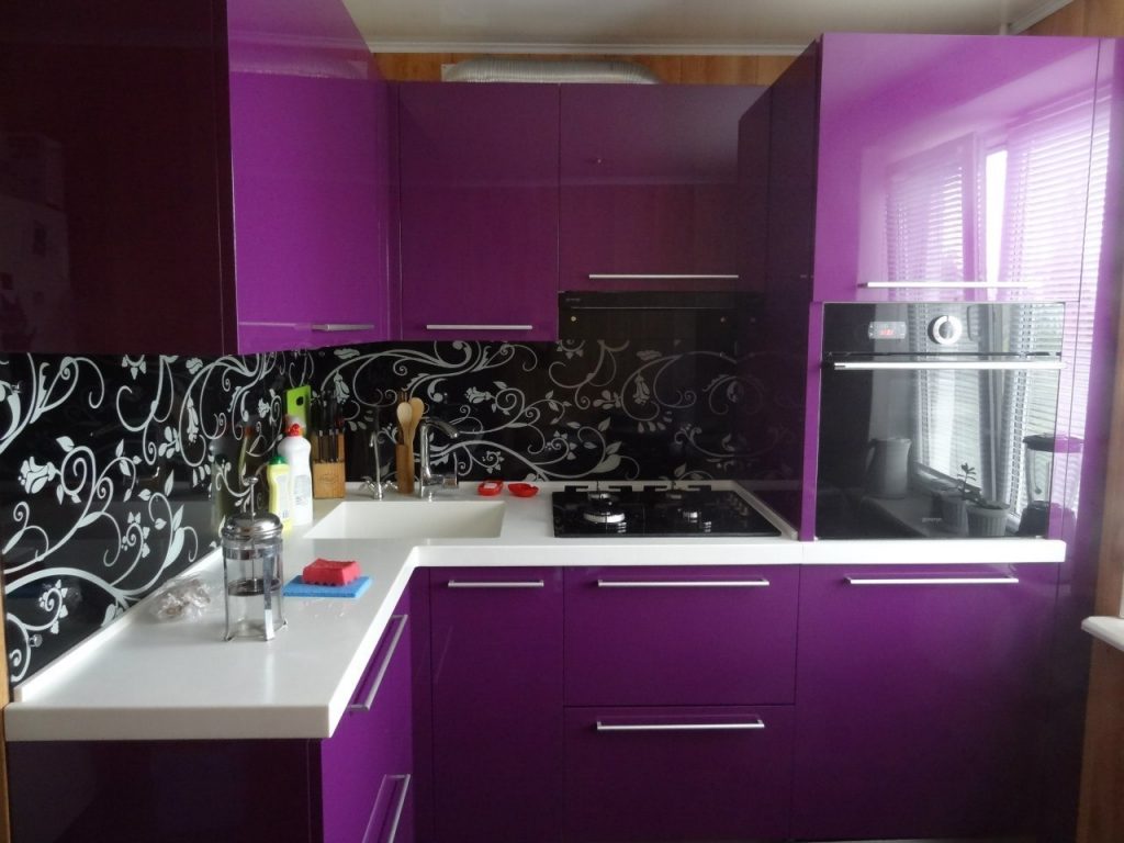 Фиолетовый гарнитур на кухне 2 на 3 метра