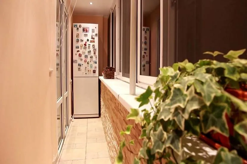 - Размещения техники. Лучше установить на лоджии всю кухонную технику – холодильник, микроволновую печь, кухонные комбайны и чайник. Для этого достаточно разместить по периметру под окном столешницу, сделать дополнительные розетки.
