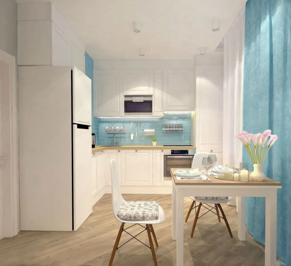 В подавляющей части квартир кухни служат столовыми; учитывая этот момент, следует выделить пространство под бытовые приборы: холодильник, плиту, рабочие поверхности для готовки, мебель.