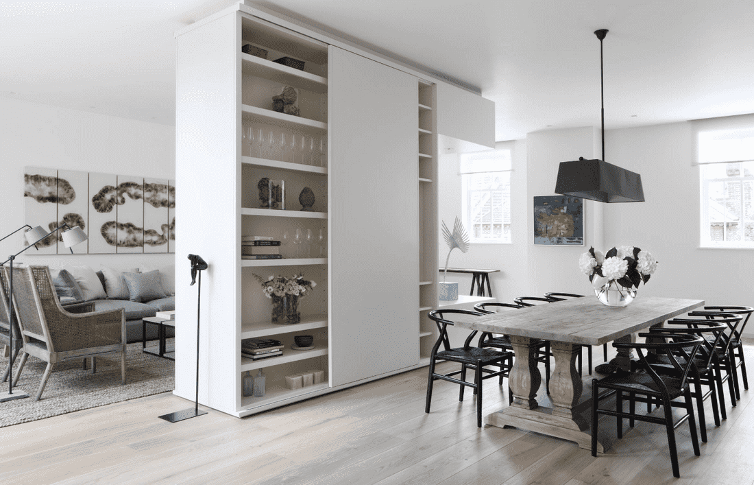 5) Раздвижная дверь или складная дверь в помещении, где кухня и гостиная вместе