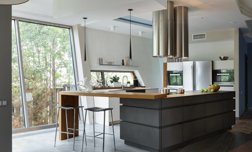 Но если более важно уединение, то создаваемое большое пространство вызовет лишь проблемы. О психологическом комфорте и дискомфорте при выборе рассматриваемого варианта кухонного дизайна также забывать не стоит