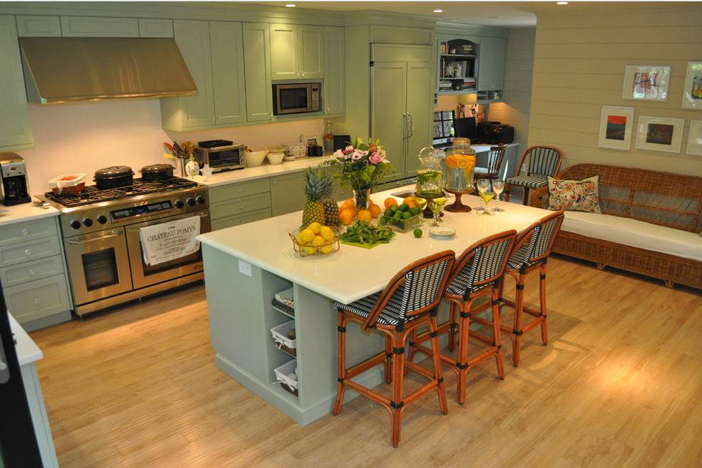 По центру кухни можно разместить функциональный остров, если позволяет ширина комнаты