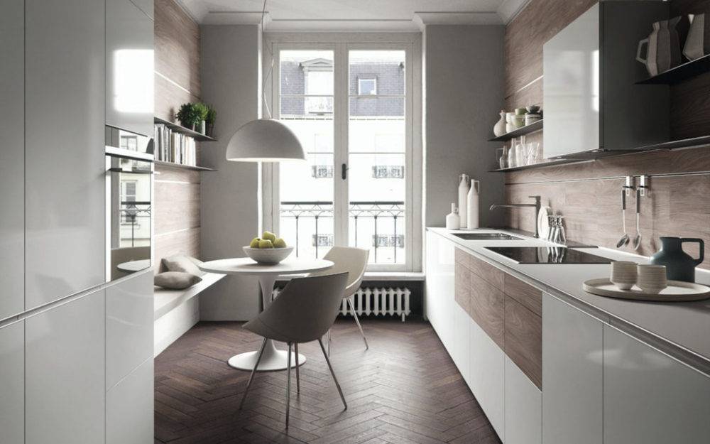 Как же правильно вписать объёмный предмет в узкую кухню? Зависит от планировки гарнитура.