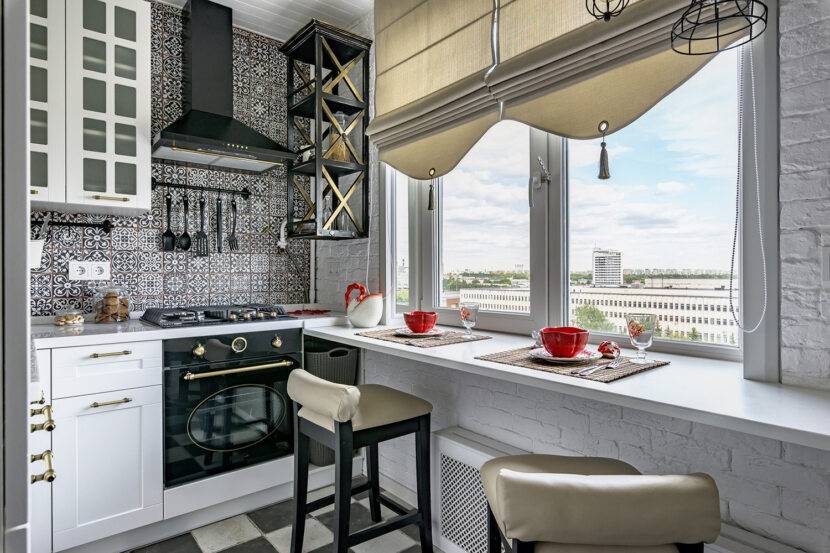 Для небольших кухонь лучше использовать более современную неоклассику: она менее торжественная и пафосная, требует меньше затрат, является более практичной.