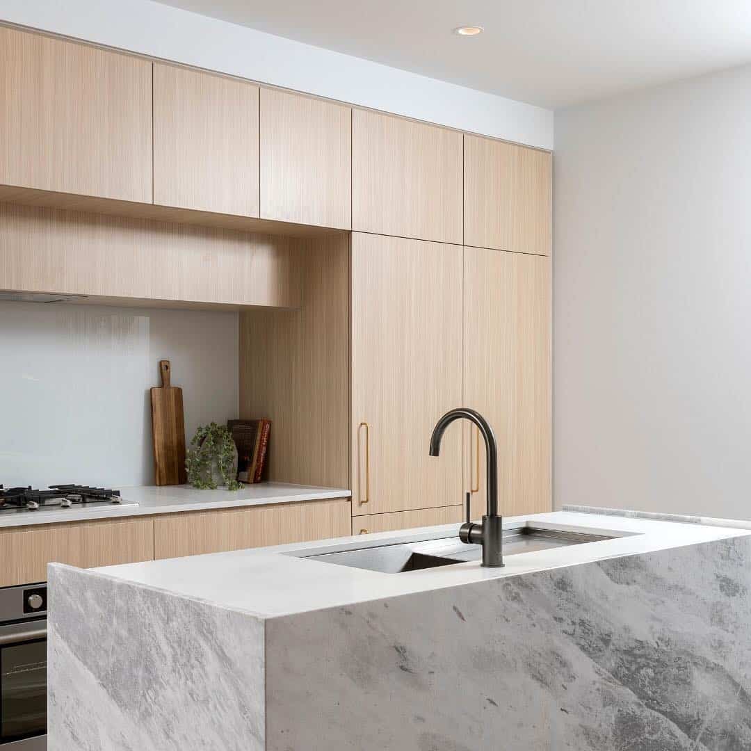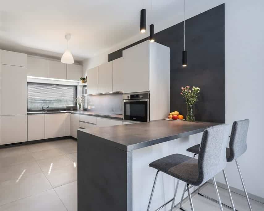 Кварц привлекателен своей прочностью и сохранением своих цветовых характеристик. Кроме того, данный материал предлагает впечатляющий выбор цветовой палитры – белые, черные и серые тона. Сегодня кварц все больше становится популярным выбором в современном дизайне кухни.
