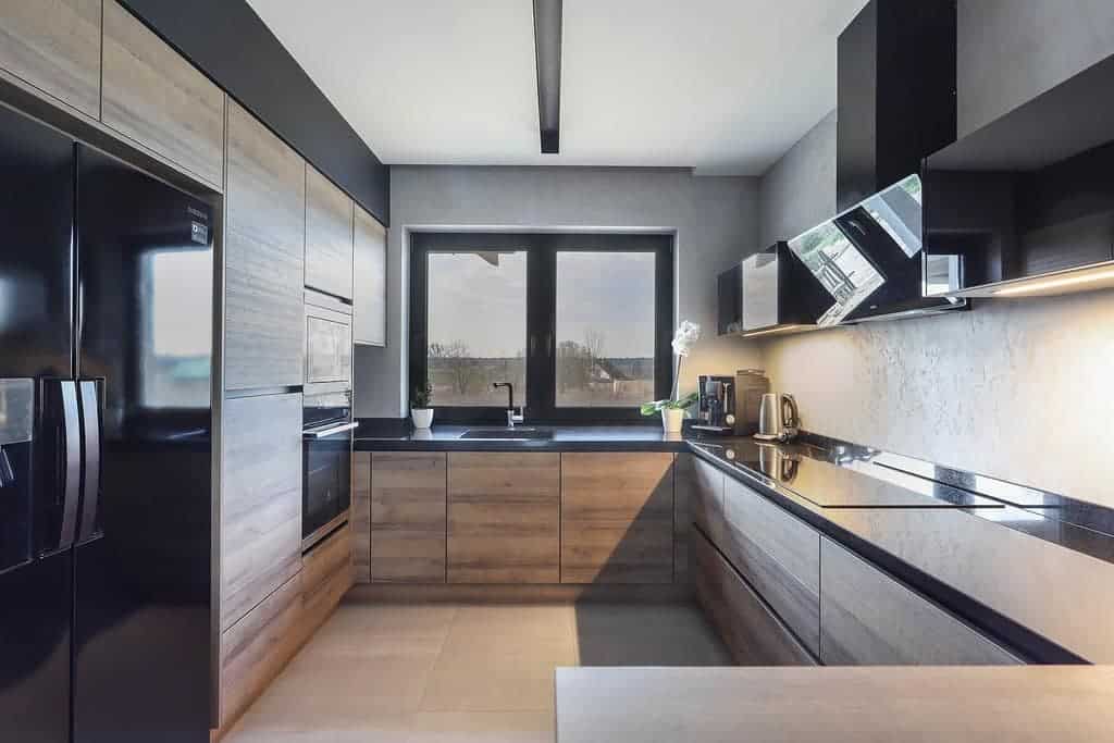 Однако возможны и исключения. Интересно смотрится классический дизайн кухни угловой 2024. Правда, у нее должны быть симметричные «крылья».