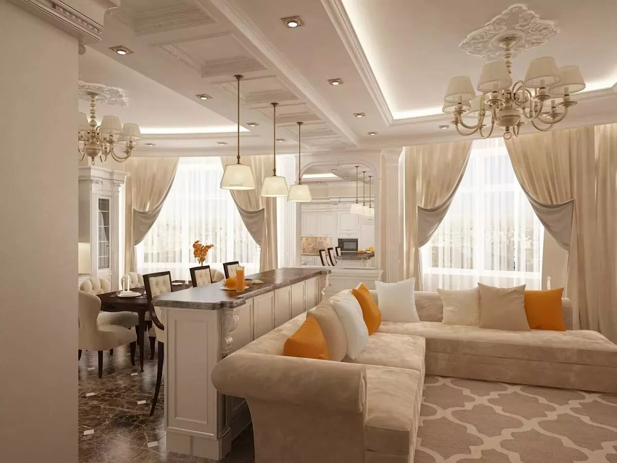 Для начала следует уточнить, что высокие потолки более предпочтительны для создания классического варианта интерьера. Конечно, в некоторых типовых квартирах с их невысокими потолками приходится прибегать к дополнительным способам зрительно увеличить высоту, чтобы стилизовать помещение по классическому типу. Применение характерных пропорций и линий поможет реализовать задуманный интерьер: