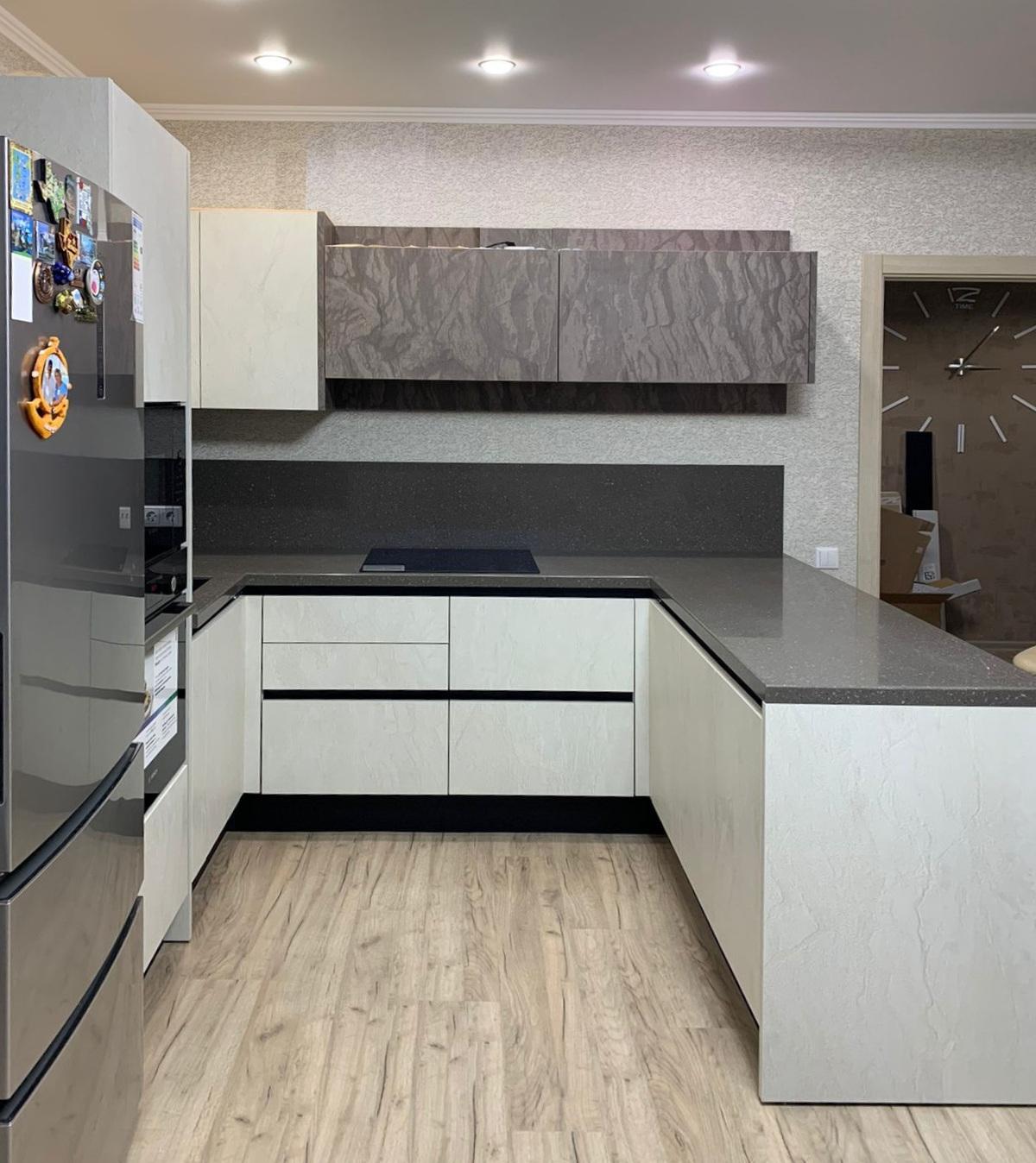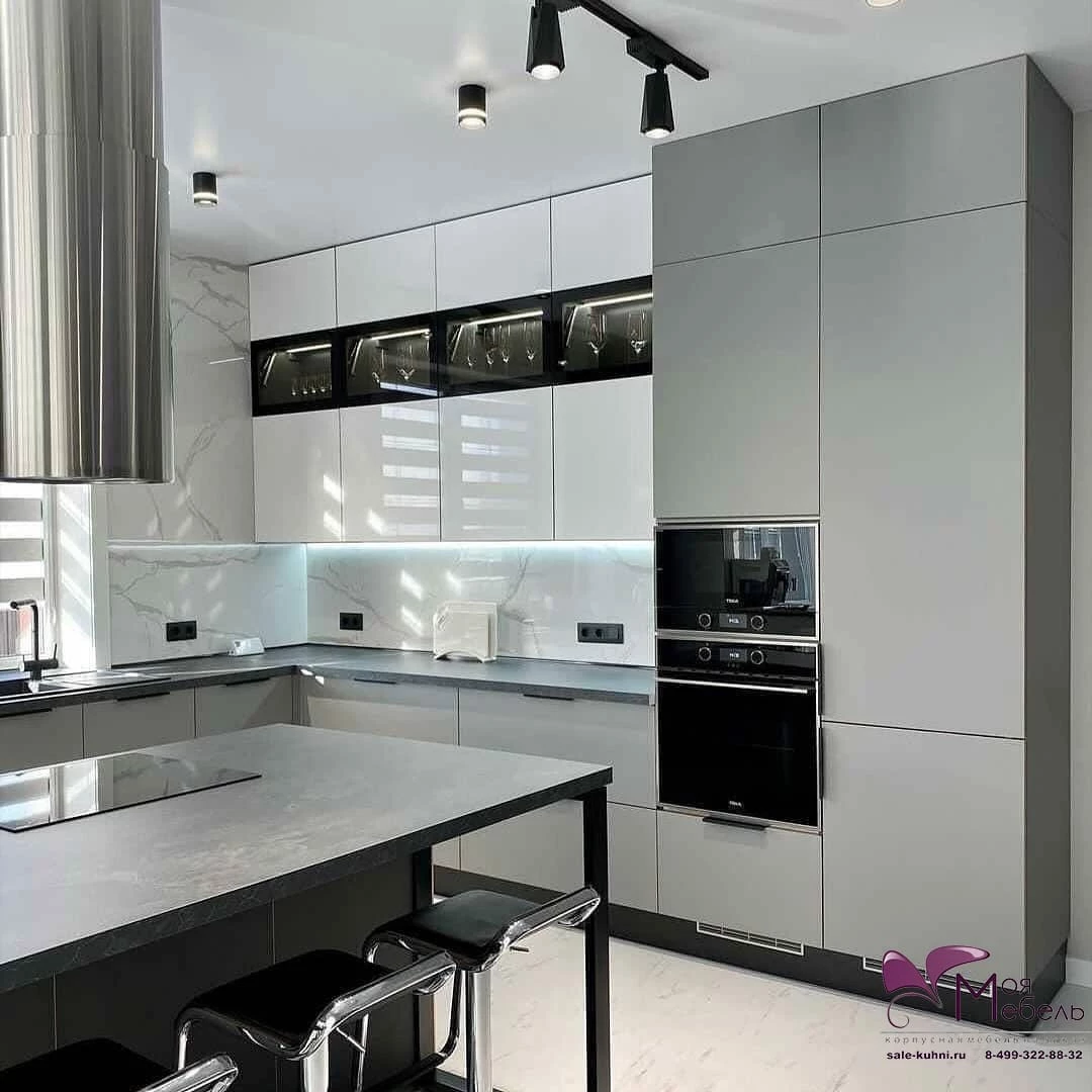 Серая кухня в стиле хай-тек