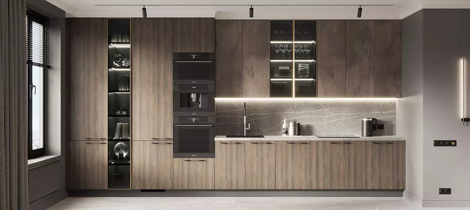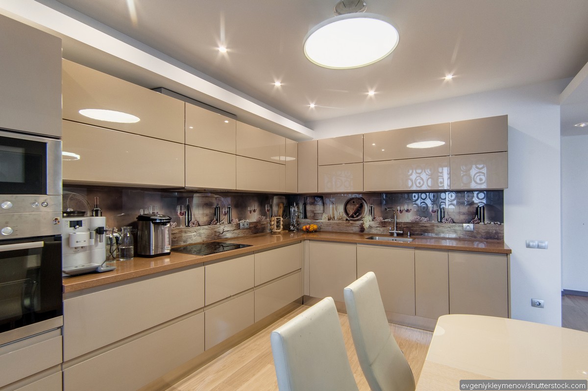 А если встроить в них светильники — это удлинить его вертикально и создаст теплую атмосферу на кухне.