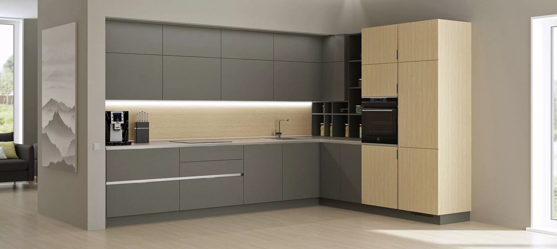Такие люди хотят видеть на своей кухне порядок, чёткость и одновременно простоту и лаконичность.