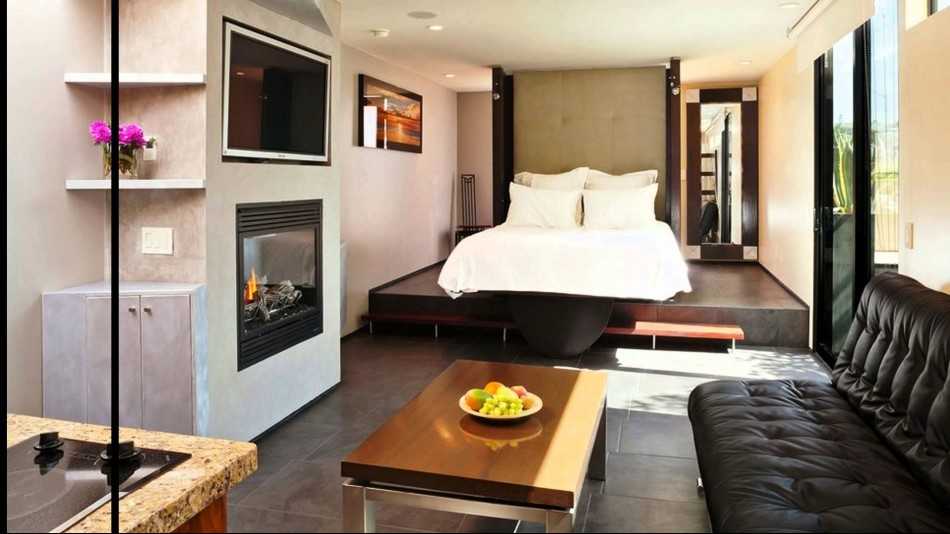 Помимо всего выше перечисленного интерьер квартиры-студии можно дополнить присутствием эффектного подиума, где может располагаться кровать или организована рабочая зона.