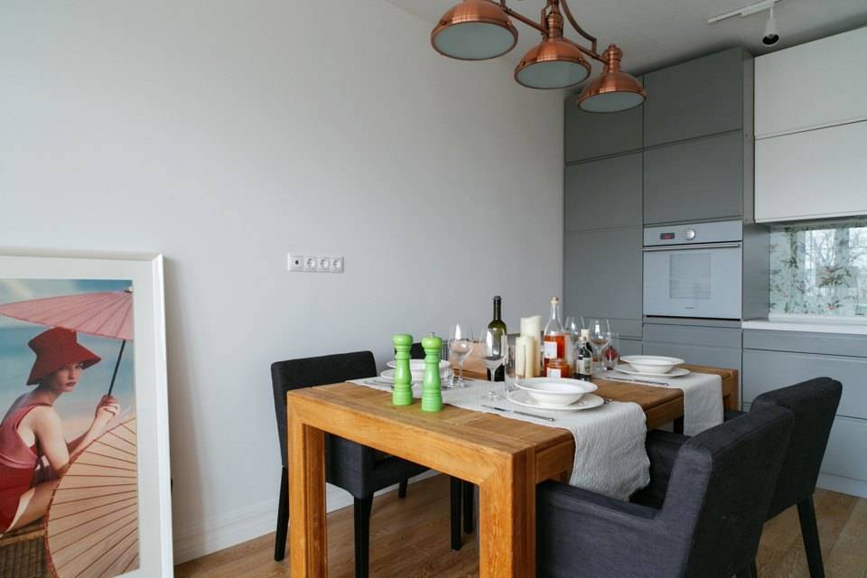 В маленькой квартире будет уместно использование не слишком крупной, трансформирующейся мебели, достаточное количество света, яркие поверхности, зеркала и глянцевые поверхности, обеспечивающие визуальное расширение помещения.