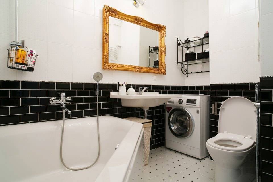 Если же перепланировка невозможна, использовать пространство нужно рационально. Например, можно заменить ванную душевой кабиной, установить угловую маленькую раковину и обзавестись угловым подвесным шкафчиком. При таком размещении можно легко обустроить в ванной как стиральную машину, так и корзину для грязного белья.