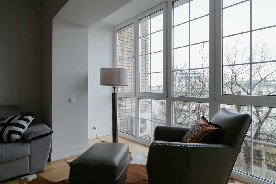 Изюминкой проекта стало панорамное окно (от потолка до пола), которое смонтировали на месте демонтированного балкона.
