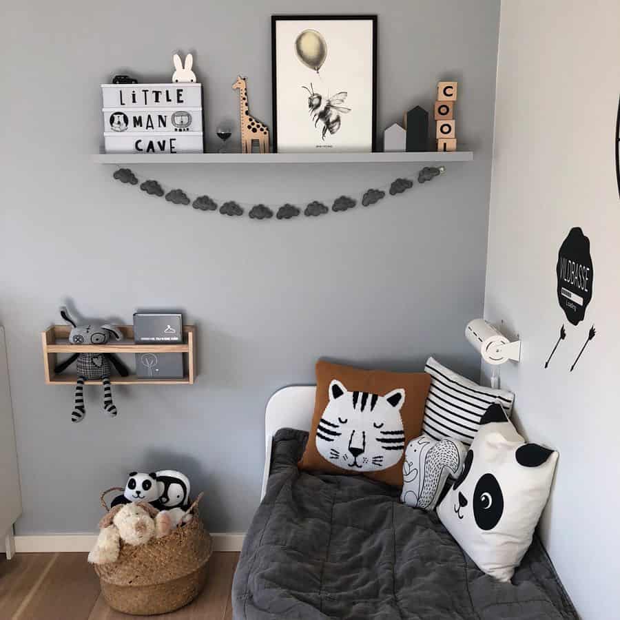 На фото стильная спальня для мальчика, выполненная в светло-сером цвете.