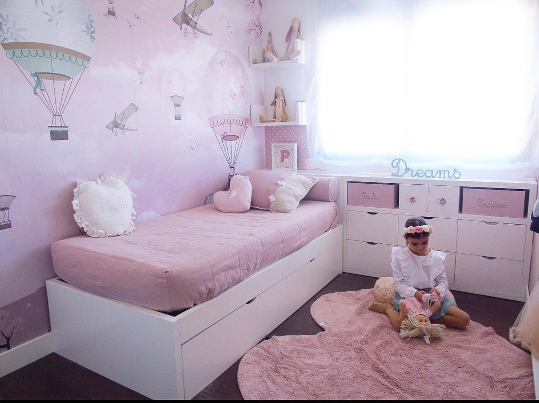 В общей комнате у каждой дочери должен быть свой шкаф или отдельные места для одежды и обуви. Полки с учебниками и игрушками, коврик и легкая завеса для зонирования может обозначать границы личного пространства, куда никто не должен входит без ее согласия. Если девочкам нравится наряжаться, оформите их комнату как парижский дворик с видом на Эйфелеву башню, используя фотообои.