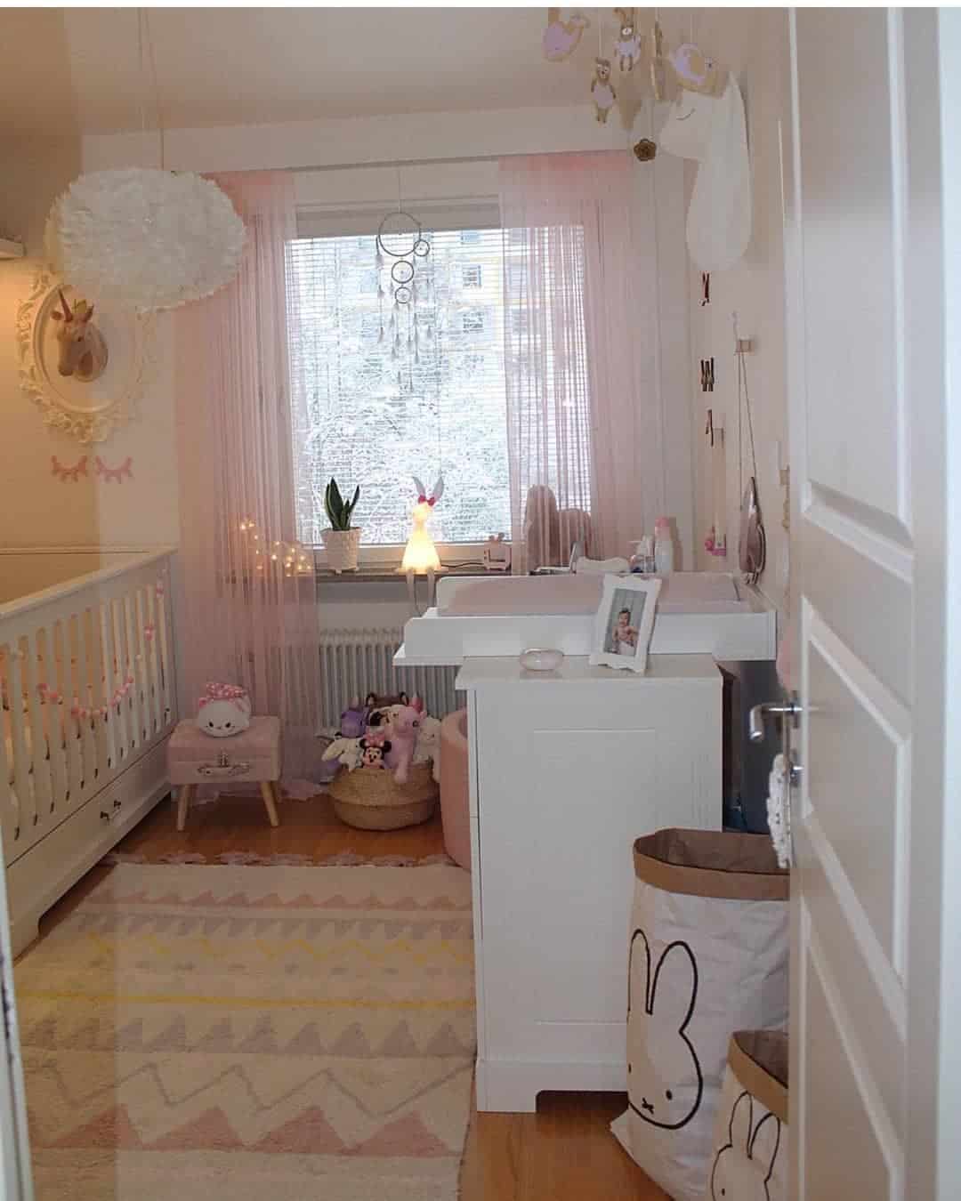 - Пеленальный столик. Это не обязательный элемент интерьера, но он способен облегчить уход за новорожденным. В детских магазинах можно найти модели комодов, совмещённых с пеленальным столом.