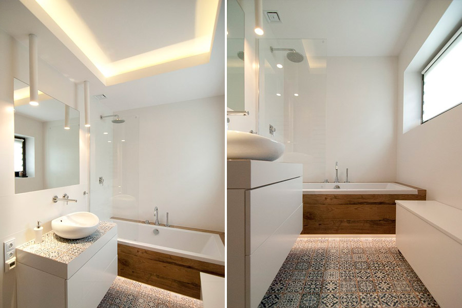 Другие возможные цвета – нежно-голубой и светло-зеленый. Помните про запрет на насыщенность и яркость. Эти цвета благоприятно сказываются на психоэмоциональном состоянии человека, улучшают эффект расслабляющей горячей ванны. Они ассоциируются с водой, природой, чистотой. Неплохо совмещаются с белым фаянсом.