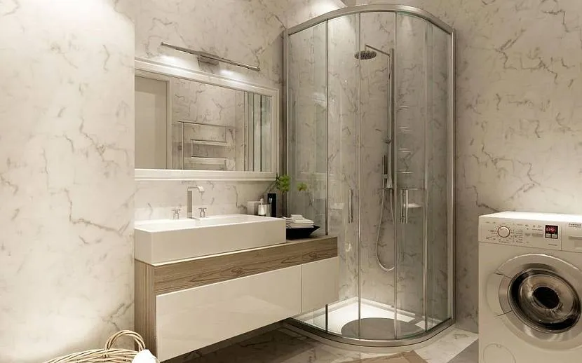 Маленькая ванная комната с душем и стиральной машиной может потребовать от владельца или дизайнера большой креативности. Как найти место для стиральной машины в ванной, чтобы не испортить общую планировку и не загромождать комнату? Стиральная машина обычно не является одним из элементов дизайна, который должен привлекать внимание сразу после переступления порога, а из-за габаритов ее сложно эффективно скрыть.