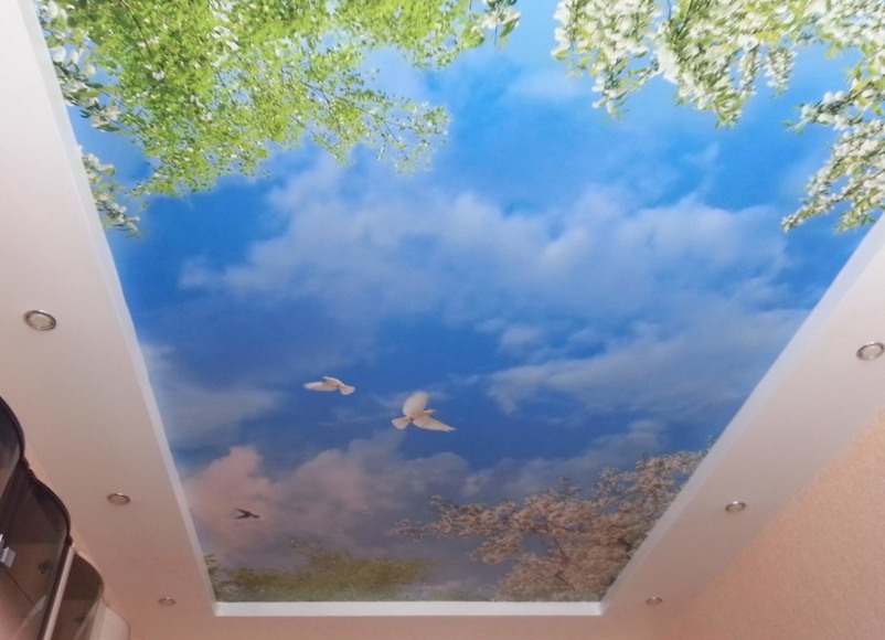 Перенести небо на потолок можно разными способами – например, при помощи: