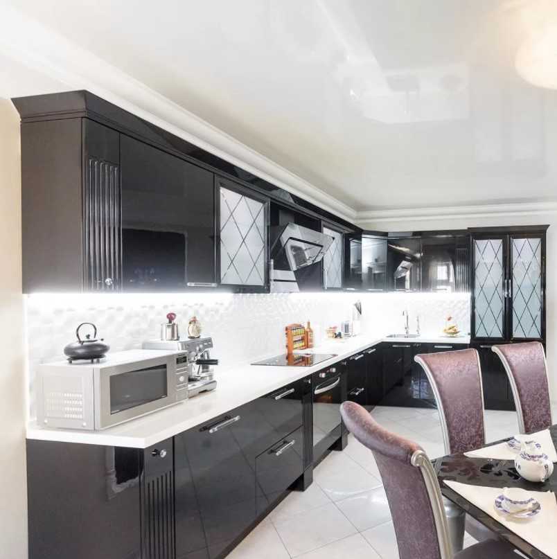 Используйте матовые потолки в кухне с глянцевыми стенами.