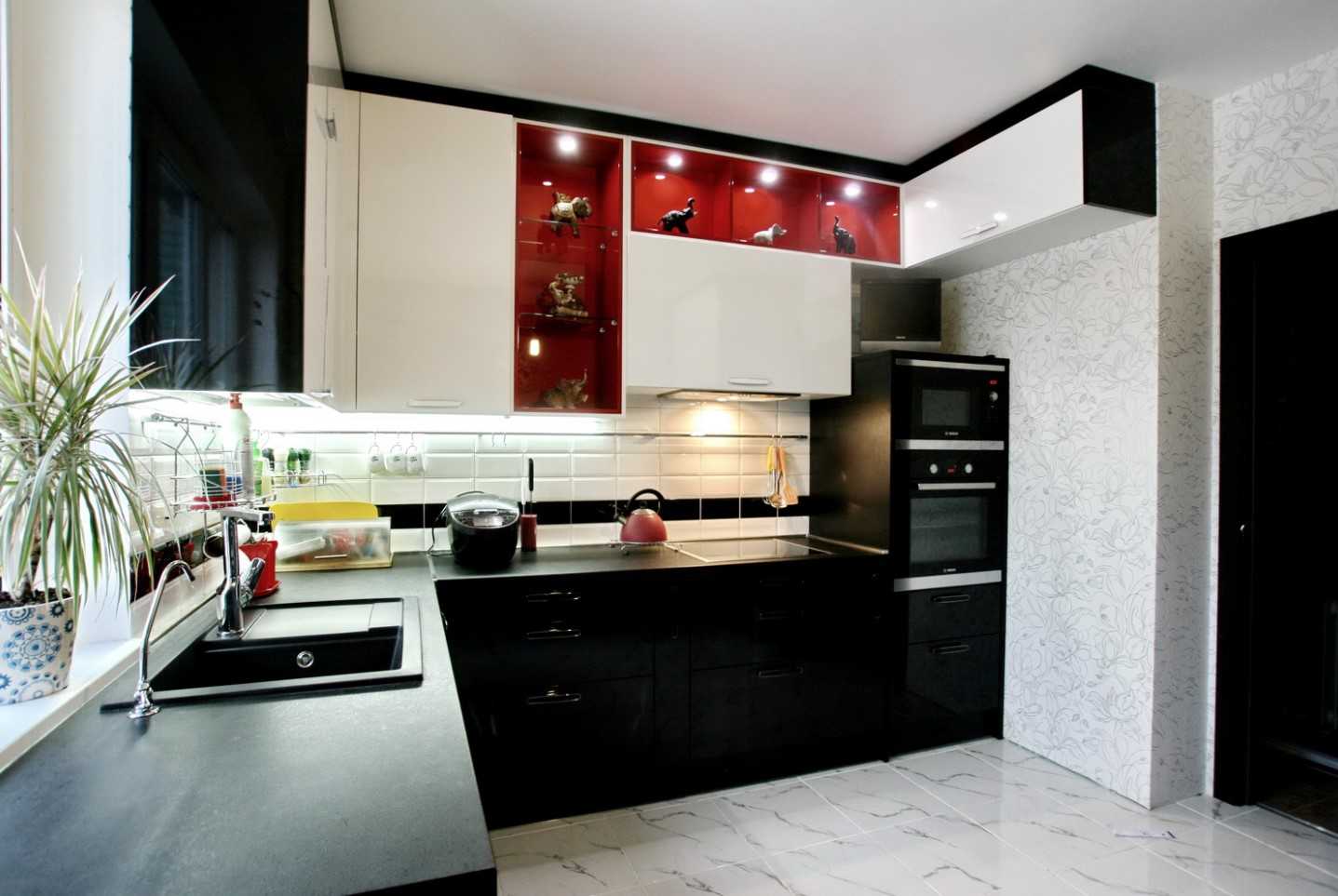 При оформлении интерьера небольшой кухни, лучшим выбором станет оштукатуривание или покраска. В тесном пространстве с высокими потолками можно использовать натяжное потолочное покрытие с глянцевой или зеркальной поверхностью, а также конструкции с использованием специальных металлических плит. Правильно подобрав цветовой оттенок с их помощью можно добиться эффекта визуального увеличения пространства.