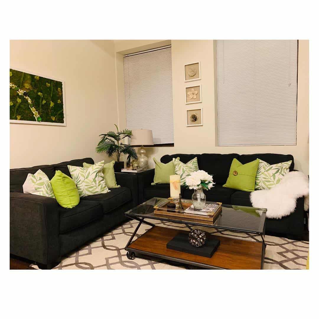 Гармоничность и целостность будет гарантировать дополнение интерьера текстилем или мебелью черного цвета. Оригинальные сочетания получаются с белым, желтым, золотым, оранжевым, а также розовым и голубым.