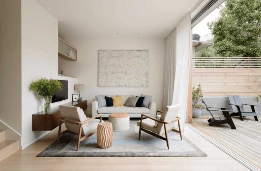 Интерьер маленькой гостиной в доме продумывается не менее основательно, чем большой. В такой ситуации желательно использовать стиль минимализма с трансформирующейся мебелью.