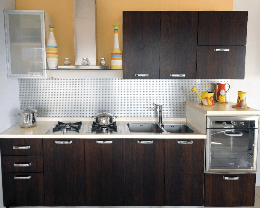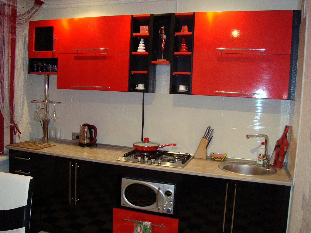 - прямой вариант кухни может быть неудобным в эксплуатации, придется много передвигаться, чтобы достать продукты, помыть и поставить на место посуду;