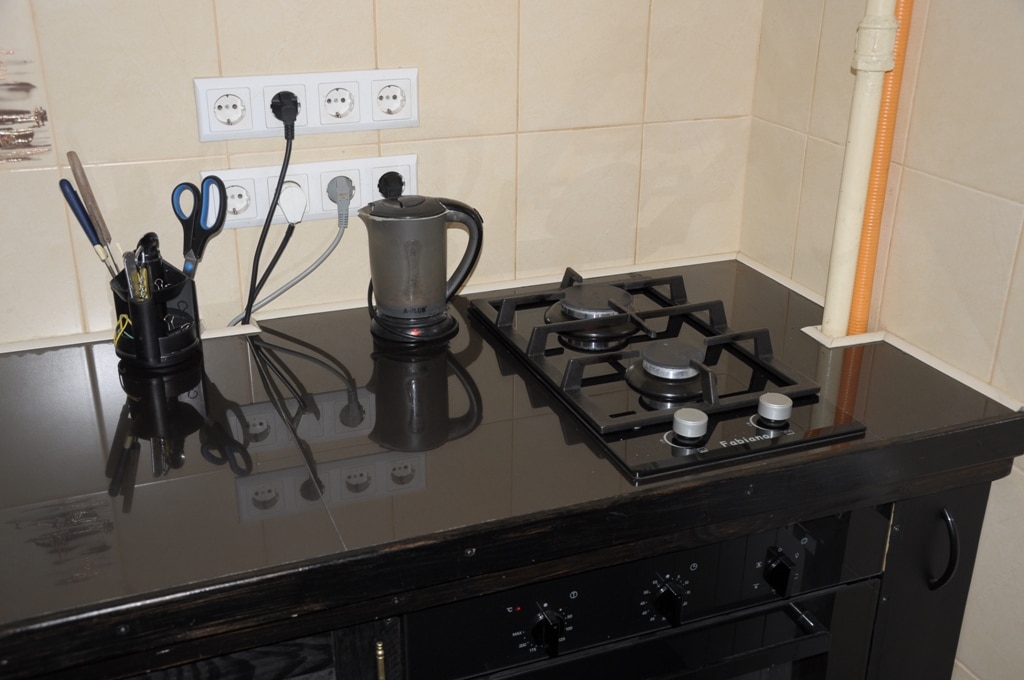 Варочная панель ставится отдаленно от других бытовых приборов, от холодильника расстояние должно быть не менее 15 см. Желательно, чтобы между мокрой зоной и плитой находилась столешница – удобное место для рабочей зоны.
