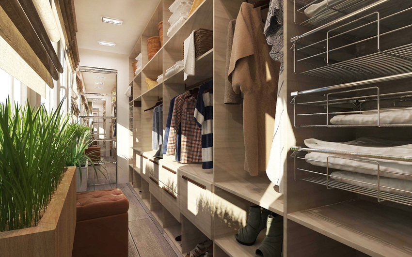 Еще один вариант использования этого пространства – зона хранения. Установив шкафы или модульные системы хранения, можно превратить балкон в удобную и просторную гардеробную.