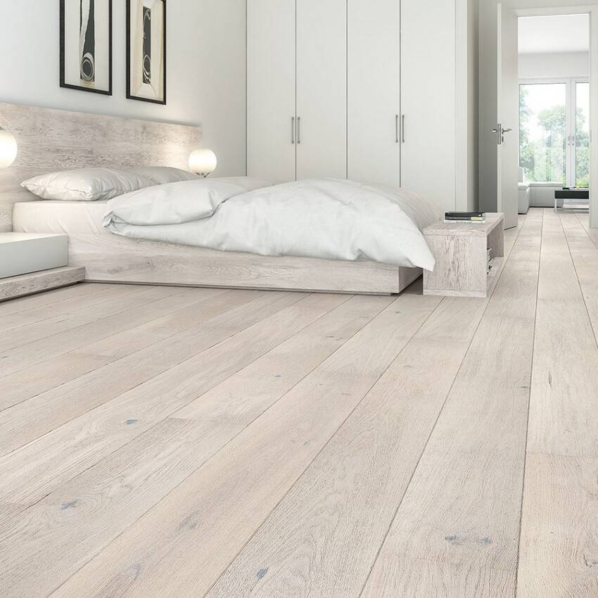 Для пола выбирается паркет или ламинат цвета венге. Напольное покрытие должно быть максимально темным. Этот прием позволит выделяться не только светлой, но и темной мебели, что добавляет обстановки изысканности.