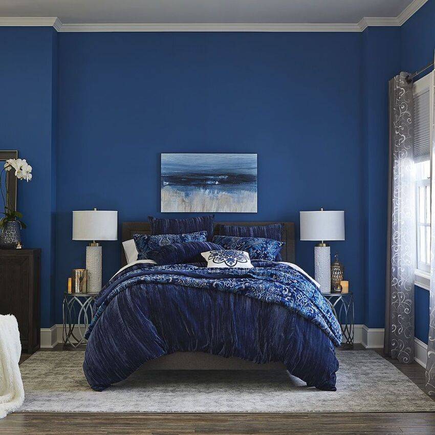 Хотя для помещений такого размера особых ограничений при выборе цветового решения нет, все же следует учитывать, что в спальне должна царить успокаивающая атмосфера