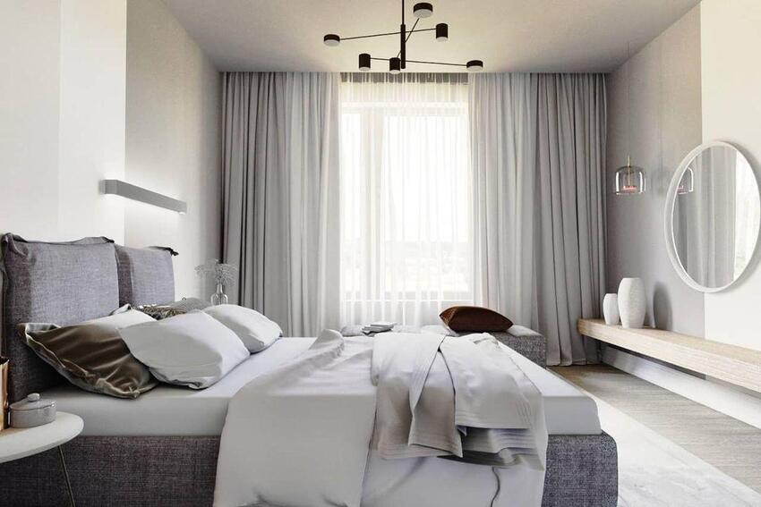 Маленькая спальня 21 века — это четкие графические линии, спокойные тона и никаких лишних предметов.