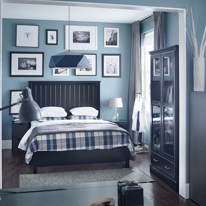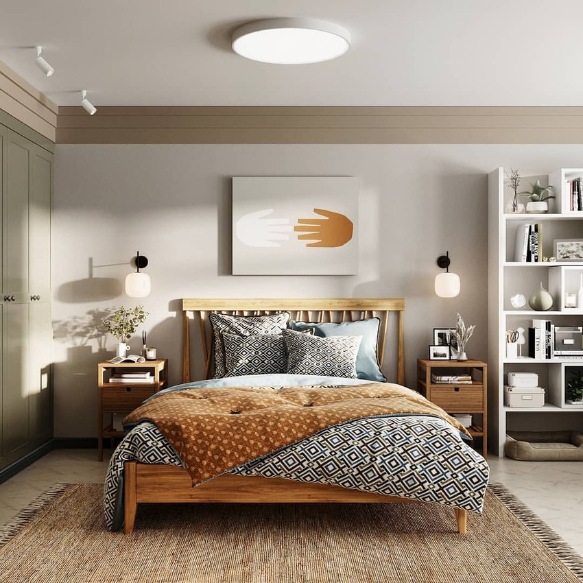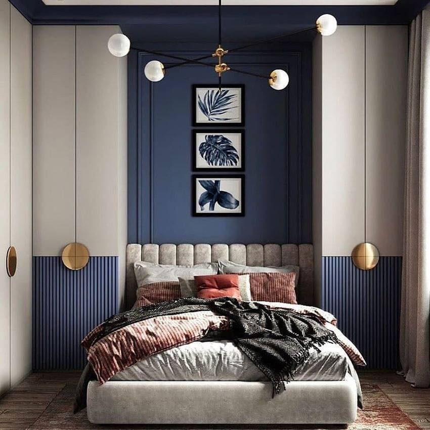 - Кровать лучше установить изголовьем к широкой стене.