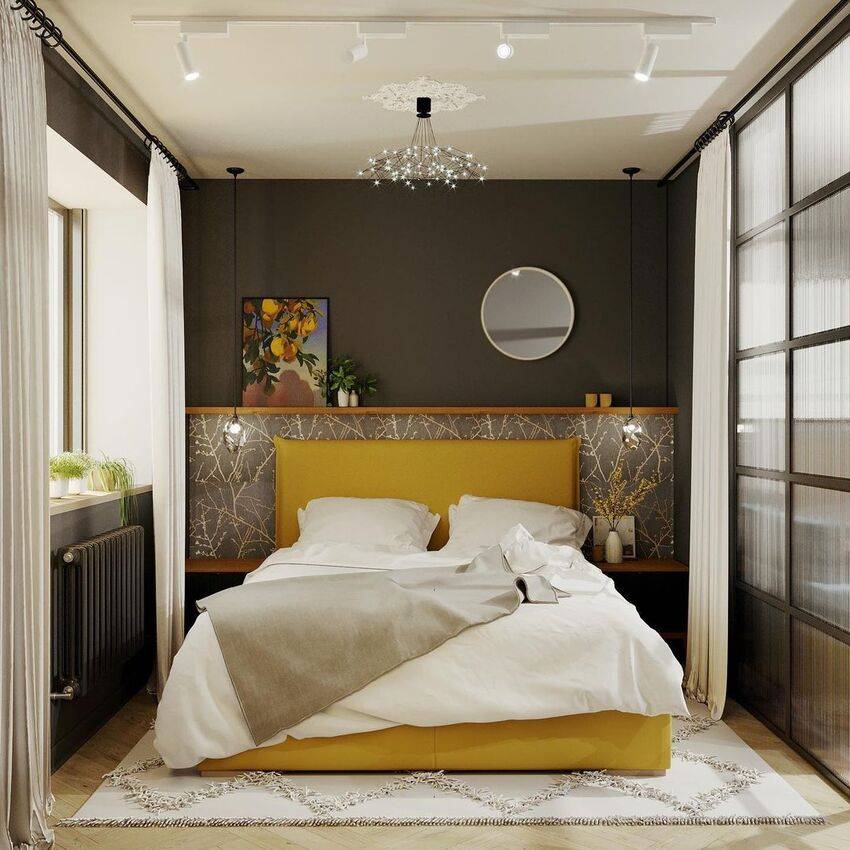 Спальня 17 кв. м в темных тонах