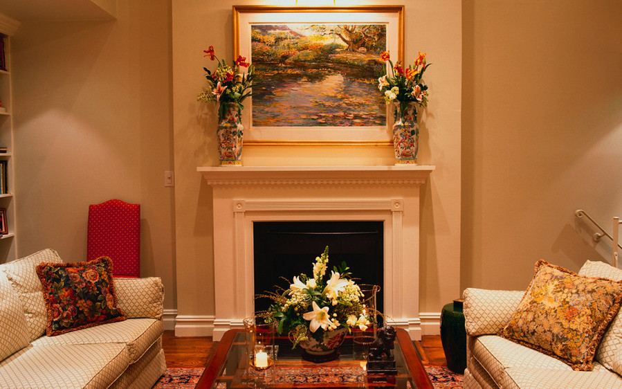 Различные сочетания цветов обоев в гостиной применяются для разделения пространства на функциональные зоны — каминную, зону для чтения, зону просмотра ТВ и другие. Этот же прием помогает выделить гостиную в планировках открытого типа.