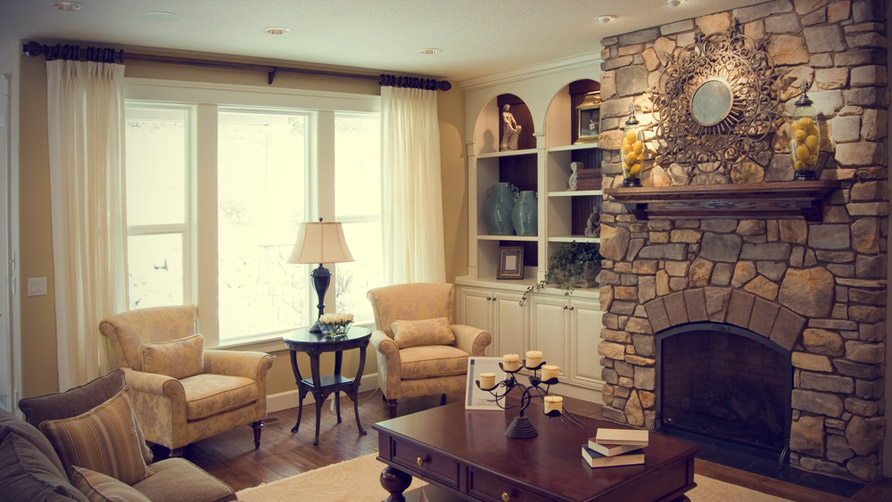 Декоративный камень и декоративный кирпич подойдут для оформления стены у камина (телевизора или фальш-камина) для создания интерьера в скандинавском стиле, кантри и классики. Такая облицовка не боится влаги, стоит дешевле природного камня и не создает дополнительной нагрузки.