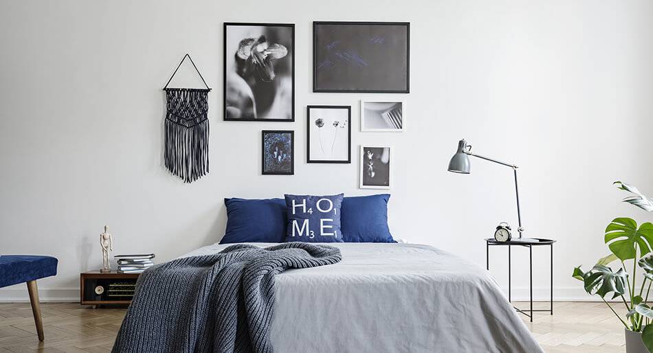 Не всегда обоим хозяевам спальни нравятся однотонные стены. Решить конфликт можно с помощью акцентной стены.