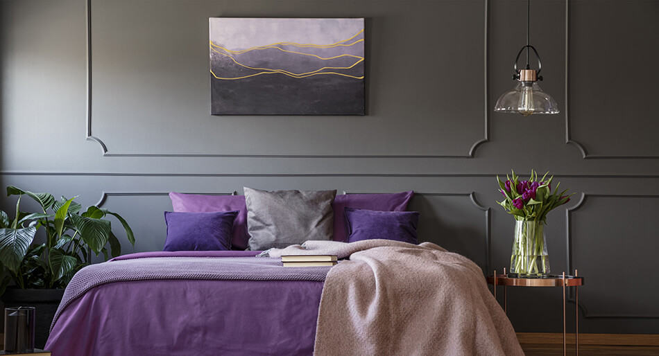 - • Cassis – сложное сочетание пурпурного, фиолетового и розового. Спальня в этом цвете будет смотреться по-королевски благородно.