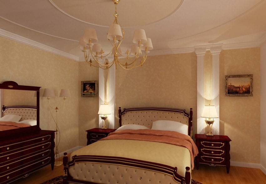 Тем, кто тяготеет к классике, стоит помнить, что на ограниченной площади полноценно воплотить её нельзя. Но никто не запрещает повесить хрустальную люстру, установить массивный шкаф и кресло.