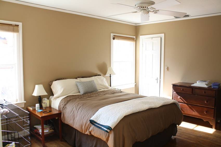 Для затененных спален хорошо подходит теплая цветовая гамма.