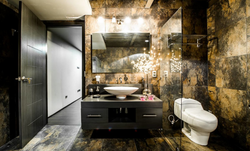 Непревзойденный шарм санузлу придадут великолепные сочетания и контрасты.