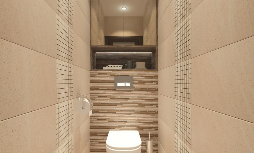 - Если туалет слишком маленький, то мелкий размер плит там будет смотреться некрасиво.