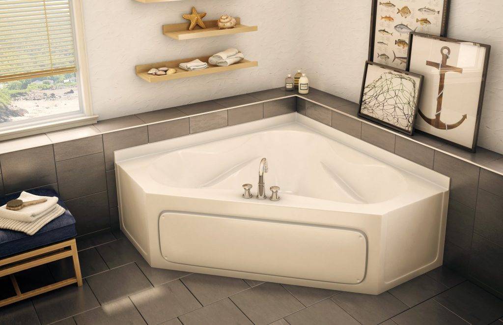 Угловая ванна занимает меньшую площадь, чем традиционные аналоги, кроме того, она имеет стильный, современный вид и способна стать одной из главных «изюминок» небольшого помещения.